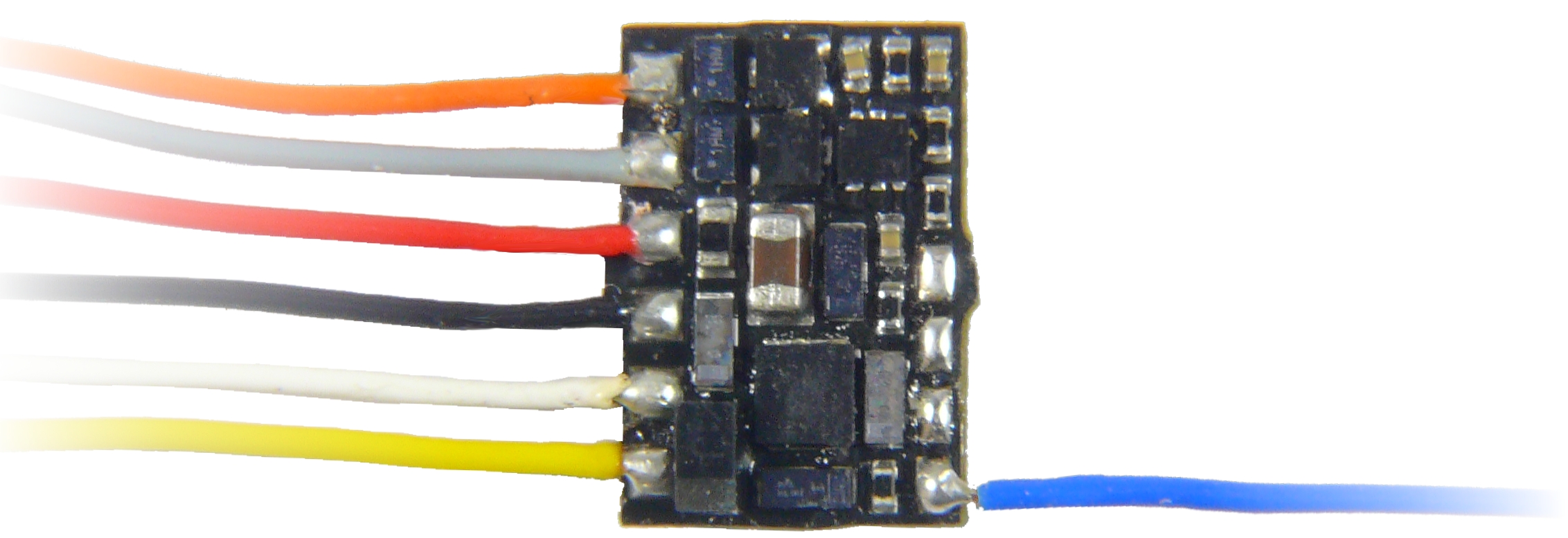 Spur-Z Subminiatur-Decoder - 8,2 x 5,8 x 2mm - Nicht-Sound - 0,5A - 6-pol Schnittstelle NEM651 an Drähten