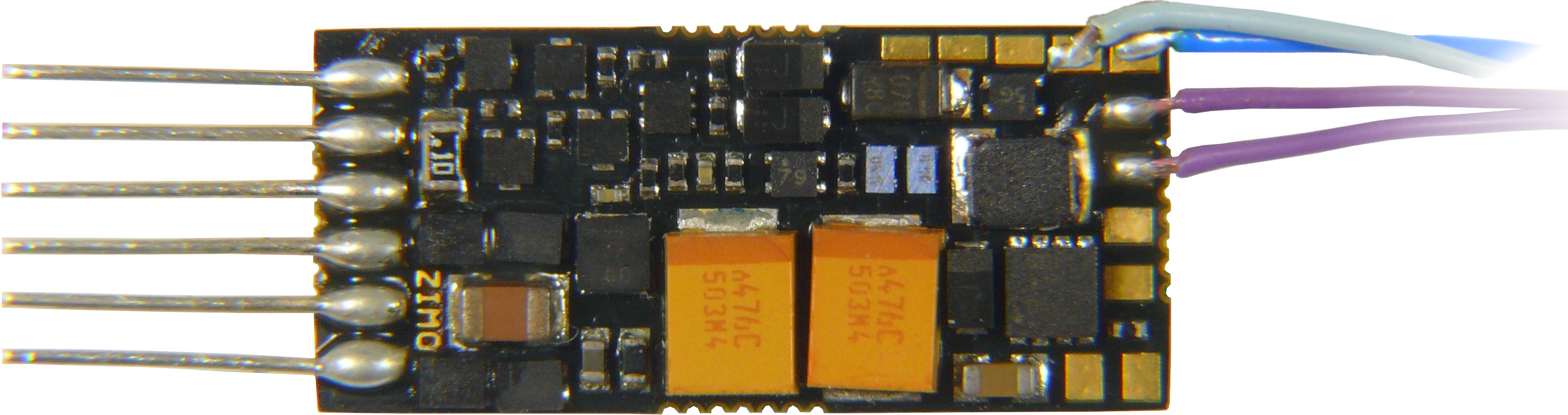 Miniatur-Sound-Decoder - 19 x 8,6 x 2,9 mm - Audio 1 W - 0,7 A - 4 FA - 6-pol Schnittstelle NEM651 auf Platine